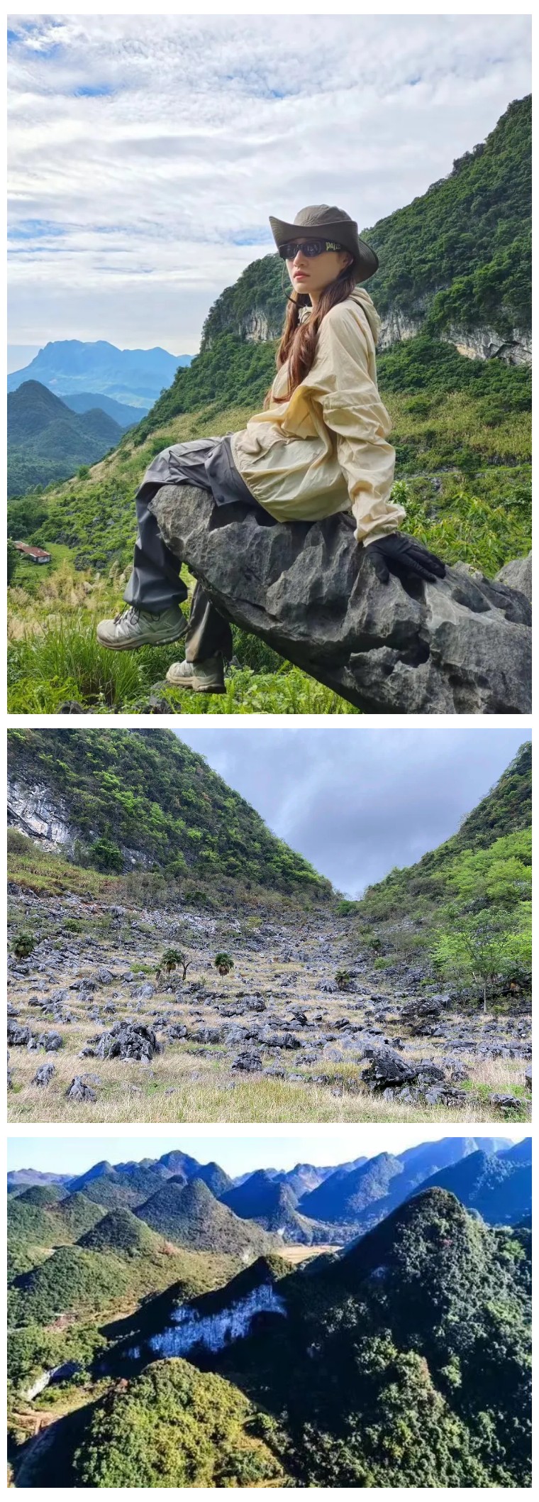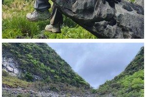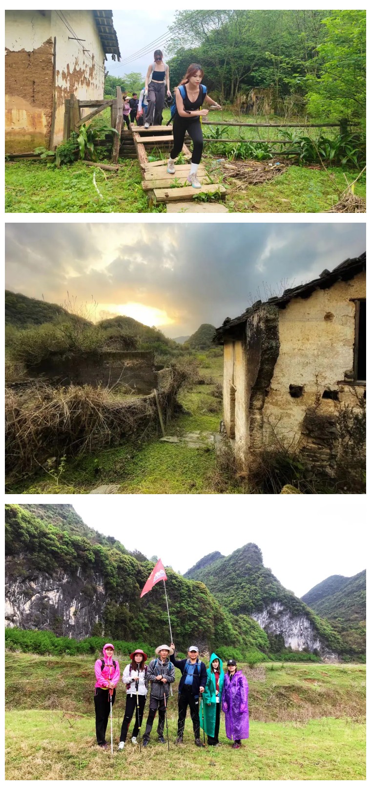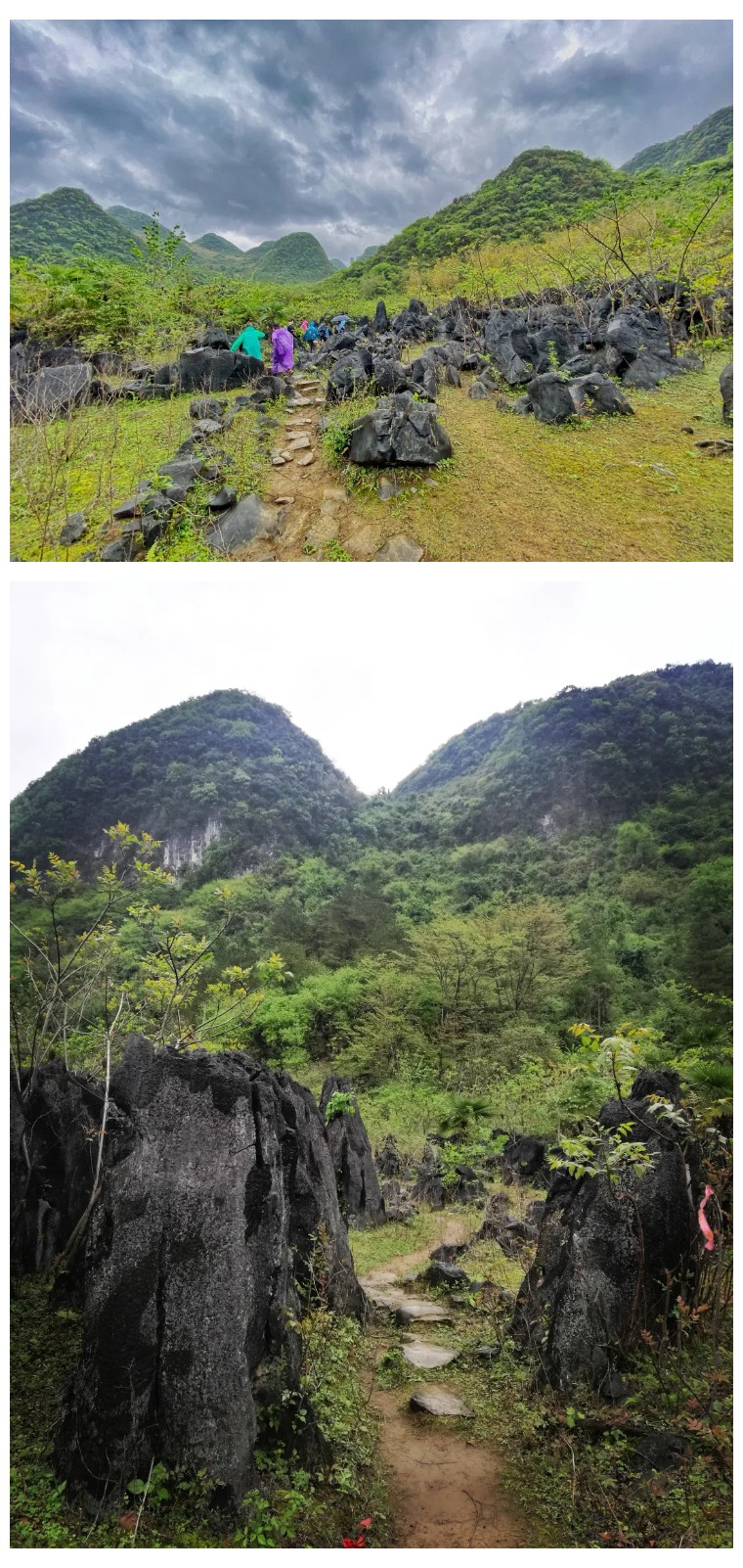 路途中,经过几个废弃村庄,有壮观的喀斯特石林,有高高的芒草掩盖得严严实实的小路。