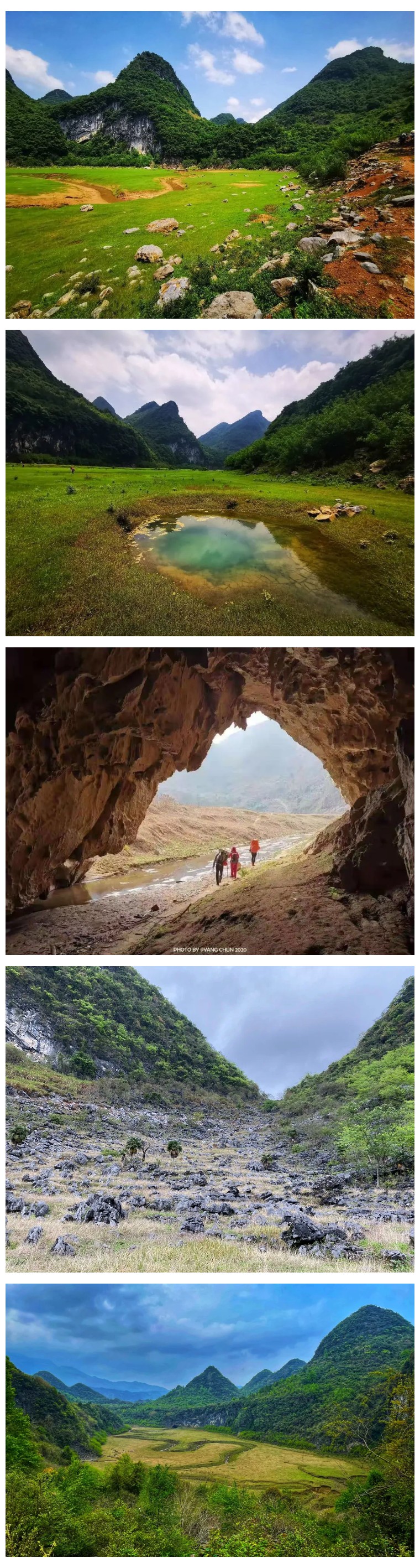 它丝带般在喀斯特峰林之间缠绕,还能欣赏到罕见的特大天坑-饭甑洞天坑,风景秀丽而原始。