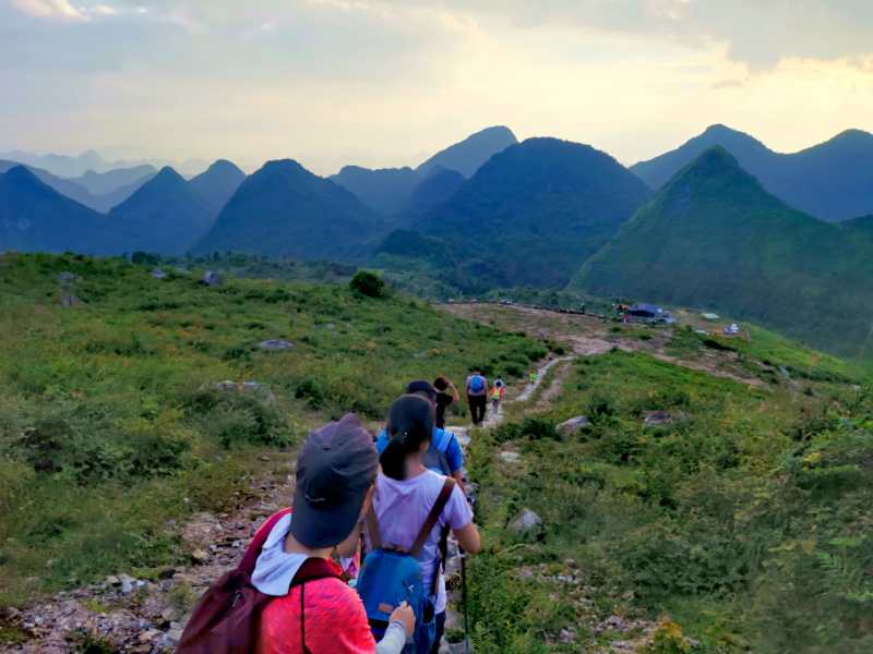 11:00 到达英德河坪村,下车进村庄,领队统一组织大家活动身体,然后开始徒步莫六公顶草坡之旅。