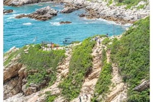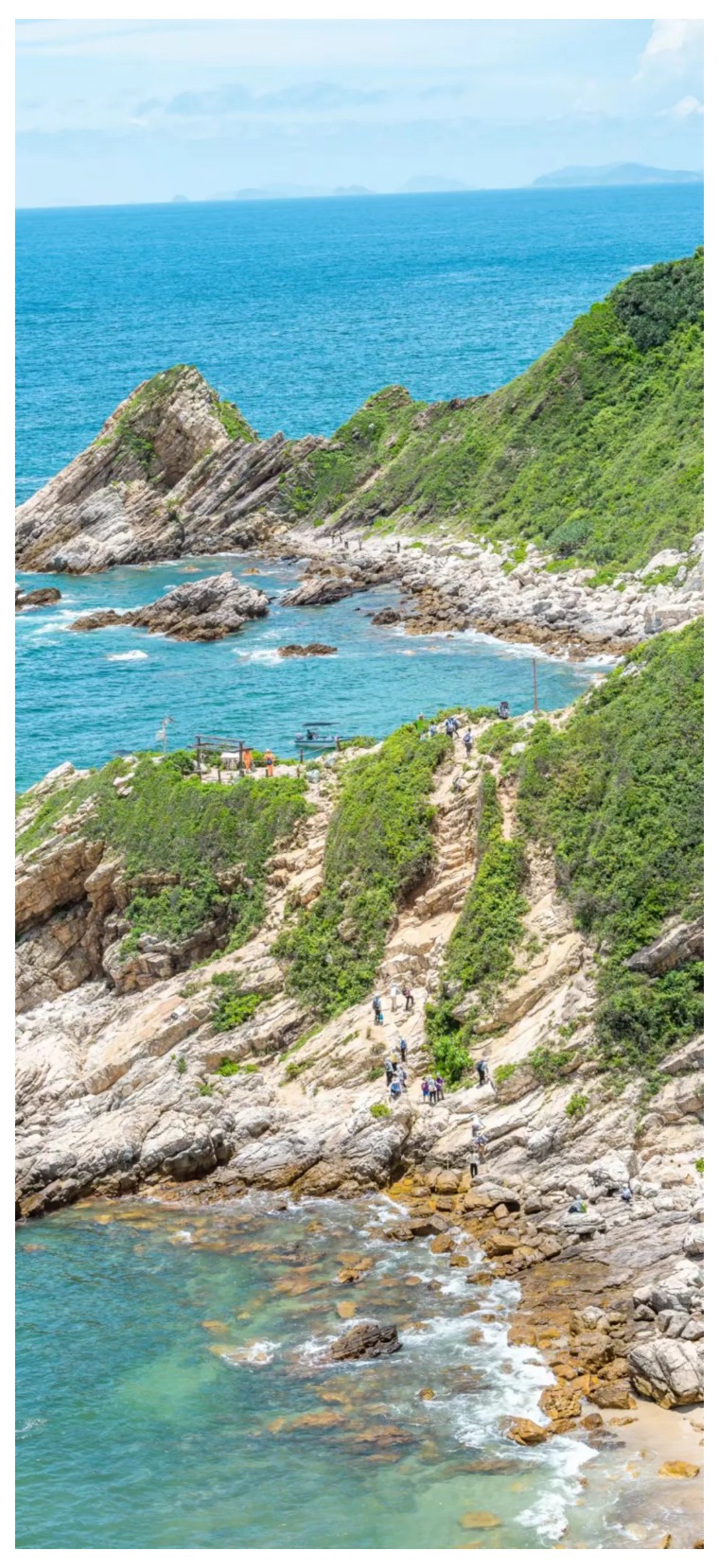 沙滩、岛屿、礁石、海蚀岩、洞、桥、柱