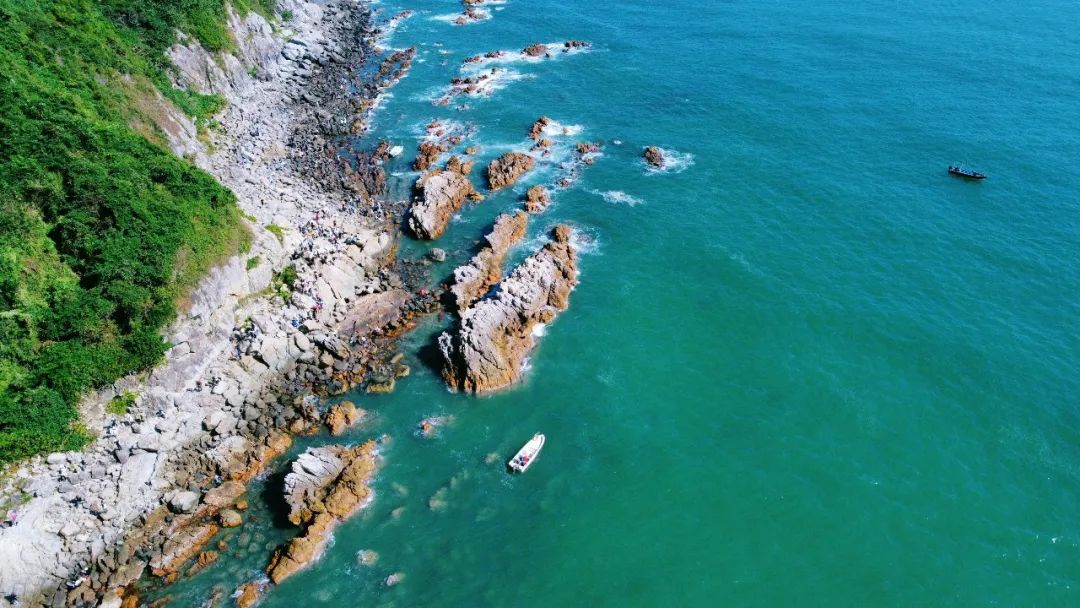 湛蓝的海水,怪石林立的海岸线
