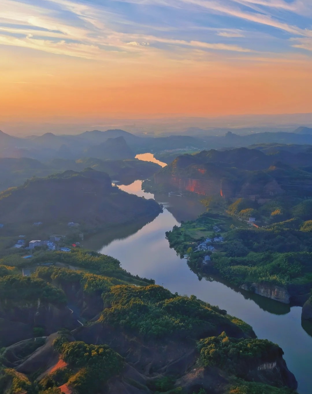 整个山谷与江面都霞光万道绮丽梦境