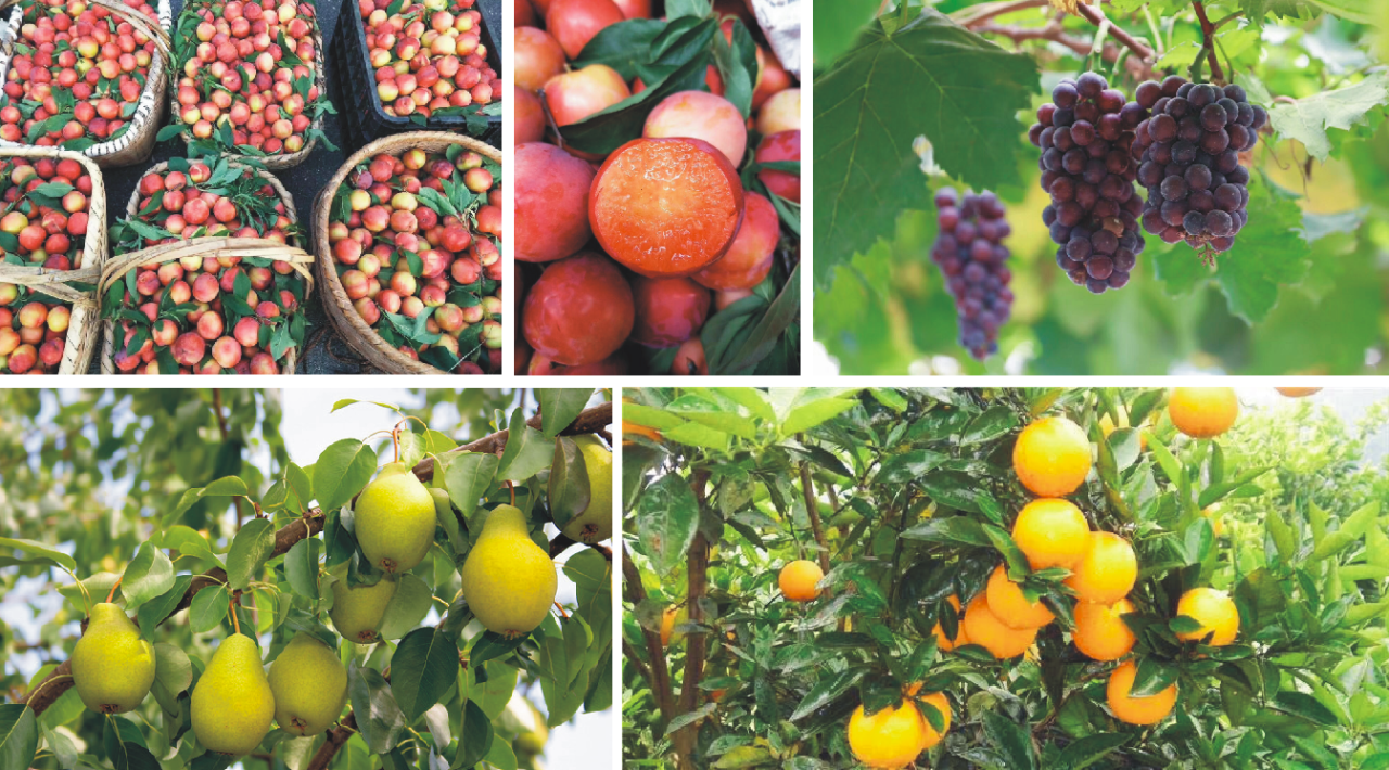 枇杷、杨梅、水蜜桃、香瓜、黄桃,鹰嘴桃、李子、西瓜、葡萄、梨子、清江蜜桔、柑子、冰糖橙、柚子等等