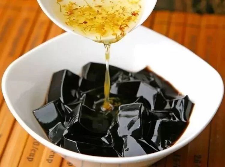 历史悠久的传统药膳龟苓膏。这里也是龟苓膏的发源地,几块钱一碗,可以加各种配料。