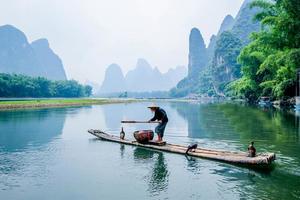 还可以与带着渔鹰(又叫鸬鹚)在漓江边撒网的白胡子老翁白胡须爷爷合照。