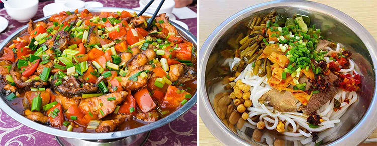 啤酒鱼,是阳朔有名的地方特色菜,鱼肉鲜辣可口,无一丝鱼本身的腥味,啤酒和鱼肉的香味可以让人胃口大开。到阳朔除了吃啤酒鱼以外,还可以尝尝当地最负盛名的“十八酿”,即十八种酿菜,很有特色。酿菜有苦瓜酿、田螺酿、茄子酿、豆腐酿、辣椒酿、笋子酿等等。