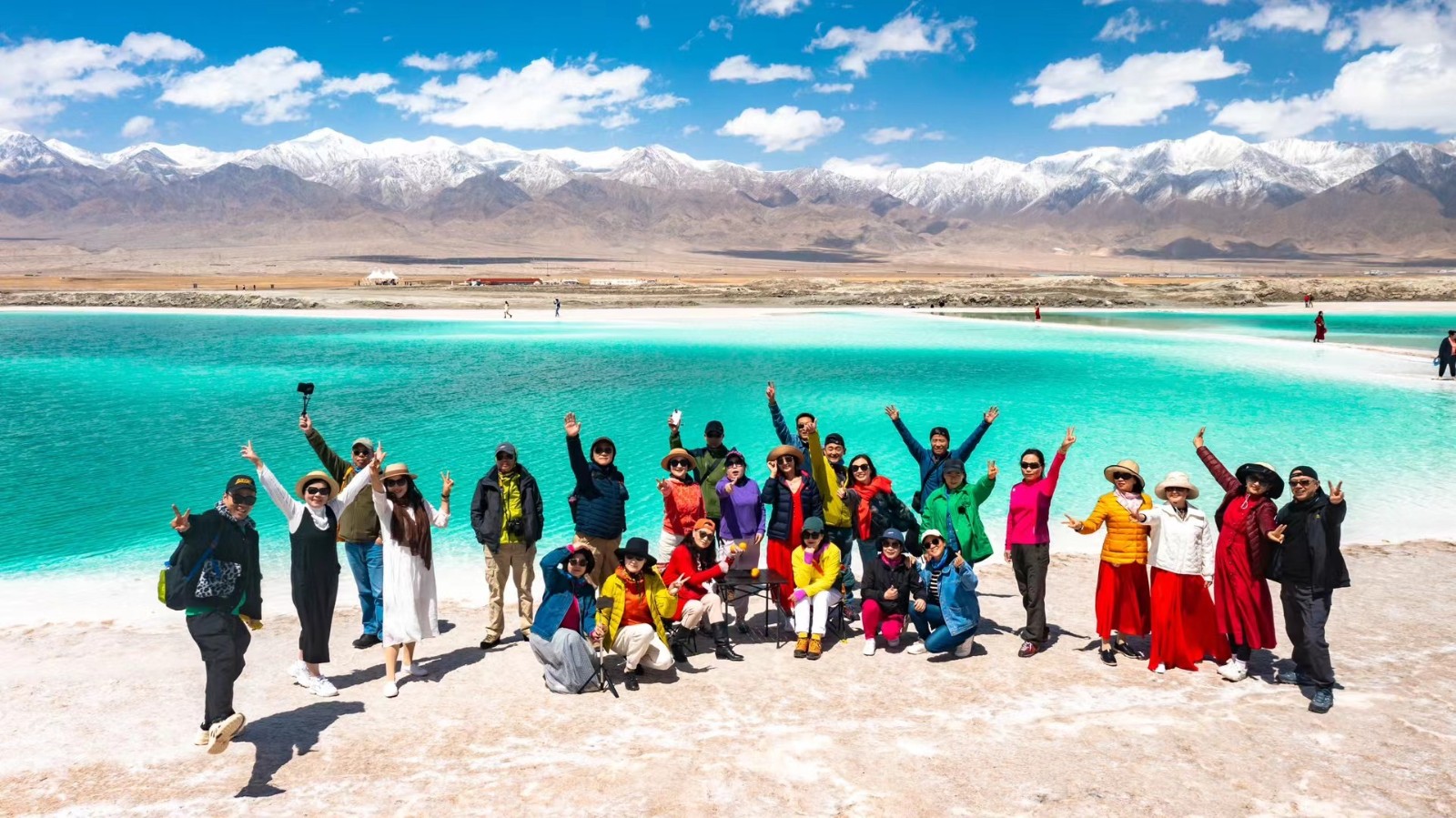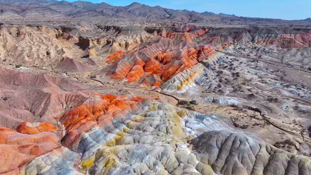 随后来到【星之谷丹霞】,《飞驰人生3》“沐尘100”拉力赛核心取景地,位于德令哈无人区,属柴达木盆地独特雅丹-丹霞复合地貌。地貌源于侏罗纪湖泊相沉积物,经亿万年风蚀、水蚀,形成嶙峋岩层、干涸湖床与戈壁滩交织的壮阔景观。这里是剧组实拍的“天然赛道”,赛车疾驰时扬起漫天烟尘,银白砾石在阳光下如盐晶覆盖,恍若异星地表。