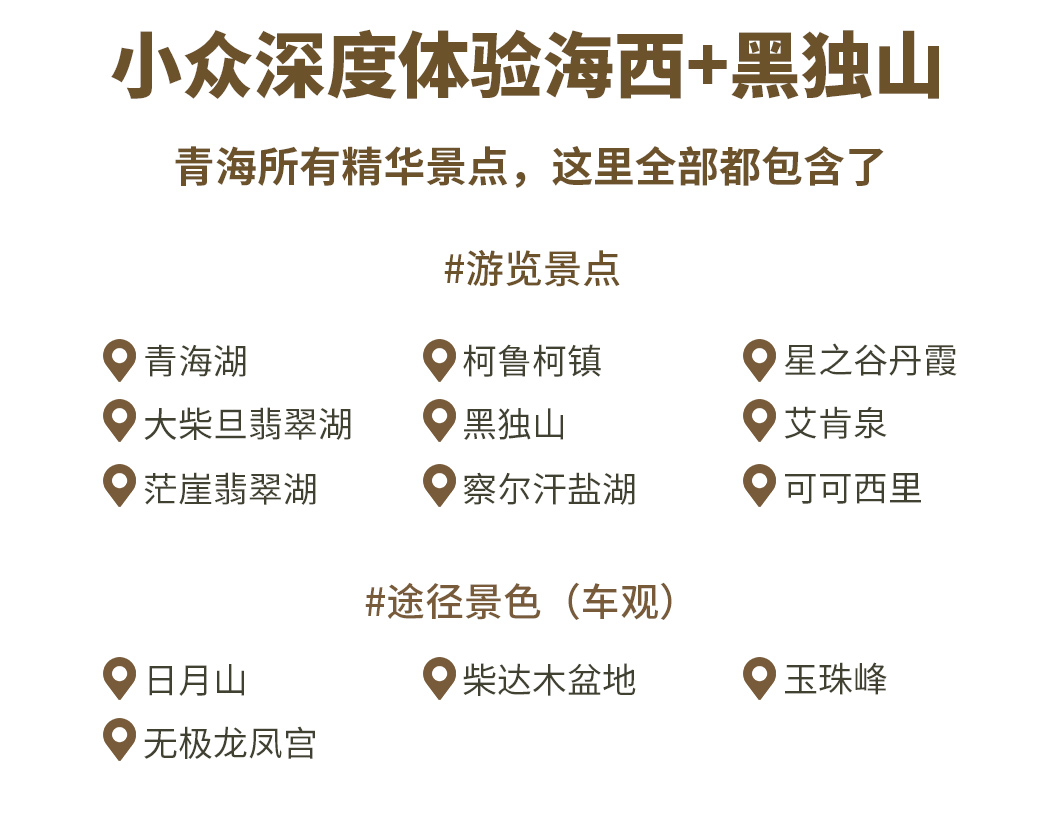【景区小交通】星之谷交通车60元/人;艾肯泉摆渡车20元/人;察尔汗盐湖观光车60元/人;黑独山小交通60元/人