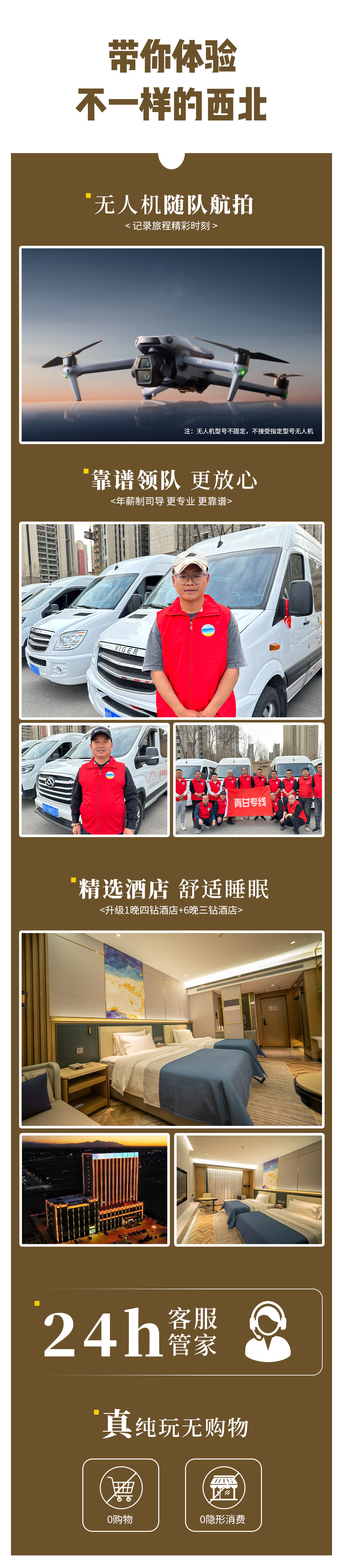 【无人机】随队配备无人机,每3到4台车一部无人机,司机师傅会选择1-2处景点给客人航拍