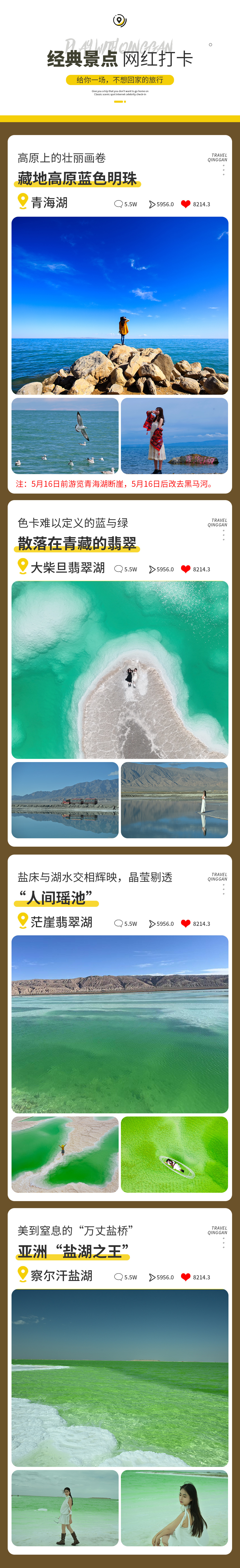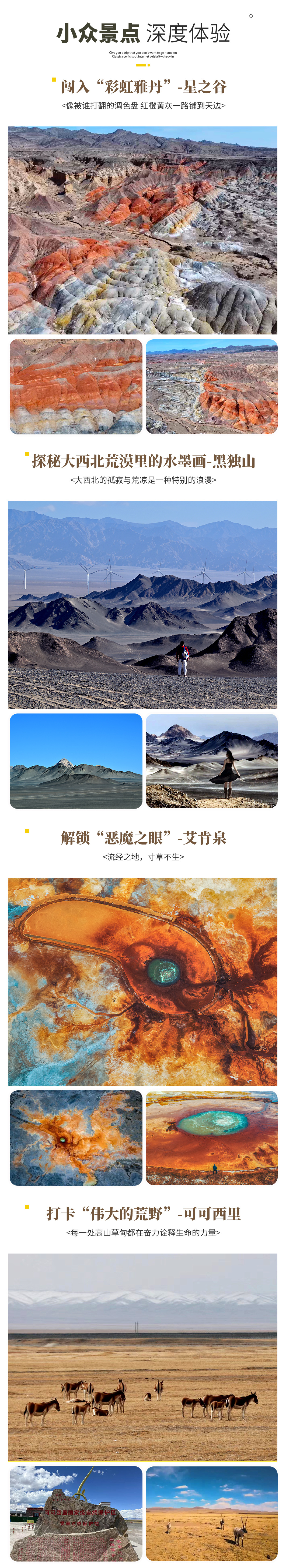 【门票】所列景点首道大门票:大柴旦翡翠湖、察尔汗盐湖、茫崖翡翠湖交通车,艾肯泉。(星之谷暂时不收门票,如收门票需客人自理)