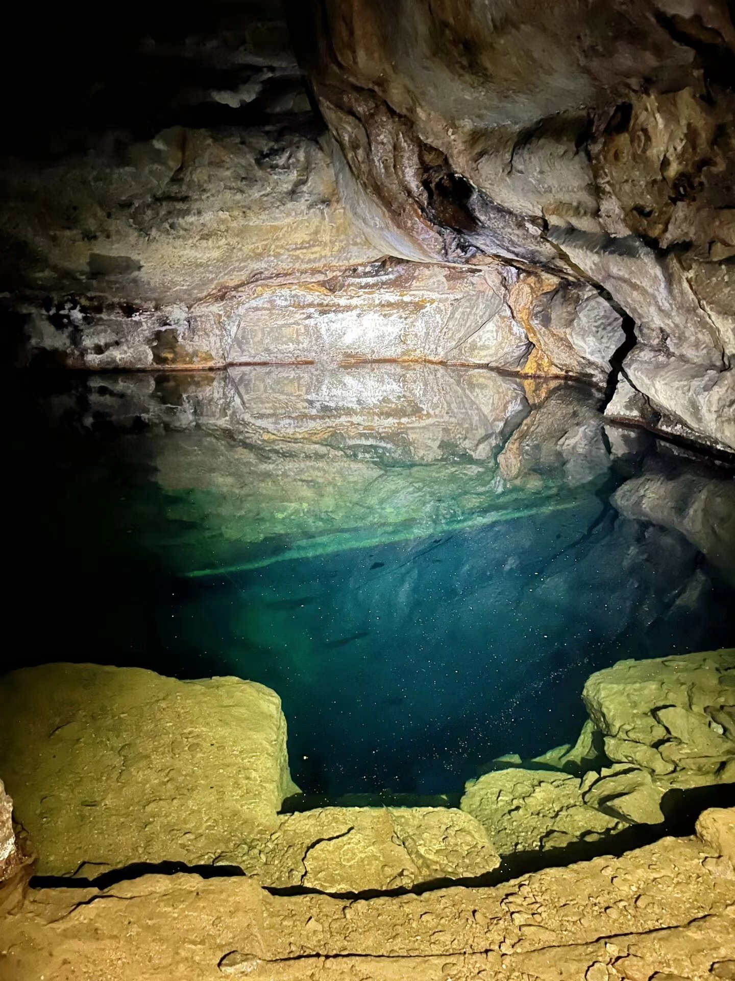 洞9黑岩,不起眼的小入口,一开始得蹲着进入,慢慢通道开朗,山洞很大岔路多容易迷路,路面湿滑,有很清但很深的水潭,注意安全;