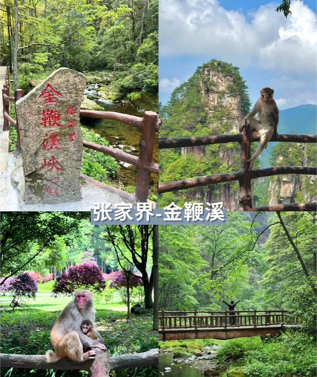 12:00 左右达到景区南门,金鞭溪这里就是孙悟空三打白骨精拍摄地点。徒步全程约6km(皆为下坡,无餐食)前往 水绕四门。所经之地被誉为“世界上最美丽的峡谷之一”,穿行于绝壁奇峰之间,溪谷有繁茂的植被,溪水四季清澈,跌宕多姿,小鱼游弋其中。“神鹰护鞭”是张家界著名景点,与金鞭岩在同一处。