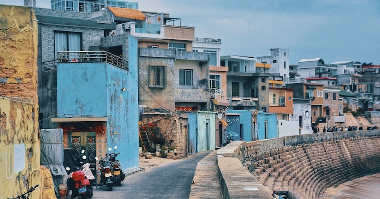 这里是电影《左耳》的取景地,一排排彩色的房子,旁边就是沙滩和大海,浪漫触手可及。