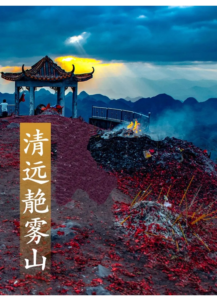 靘(qing)雾山,海拔830米,位于阳山、英德、清新交界处,它不仅处于这片喀斯特峰丛地貌的中心,也是最高的石灰岩山峰,因此有着“万峰之王”的美誉。在靘雾山顶修建充天仙娘庙,是经过勘查风水后的理想选择。