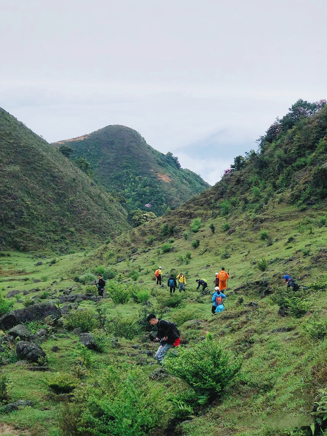 11:00 整理好随身衣物装备,开始徒步登山,进入登山径,沿途需攀登斜坡,穿越草丛,务必穿长袖衣裤、遮阳帽、手套、登山杖、护膝。