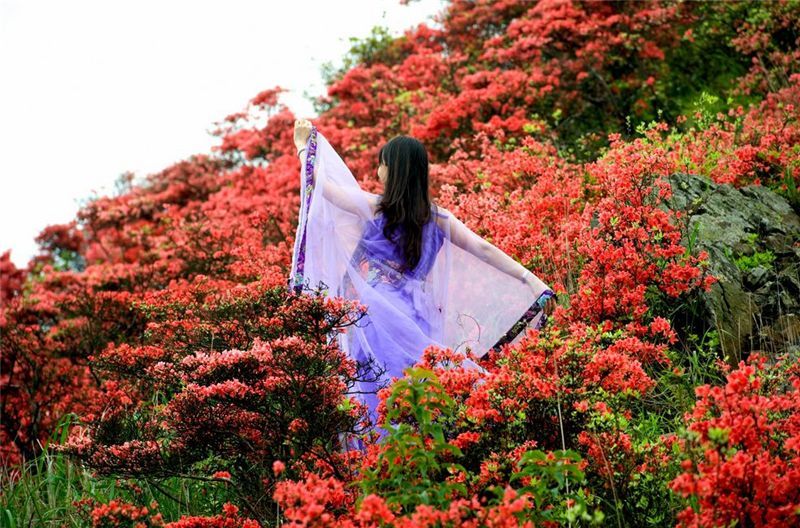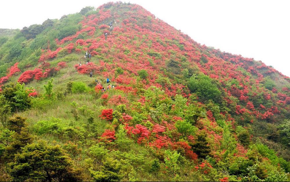 海拔900米以上满山遍野都是红灿灿的杜鹃花