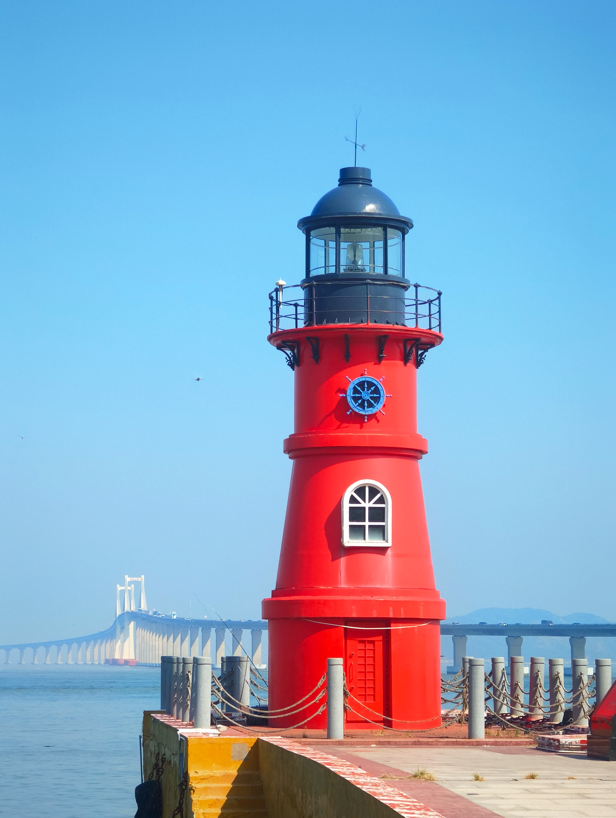 长山尾灯塔位于启航广场,灯塔塔身全红色,十分亮眼,风格清新,吸引了众多文艺青年到此打卡。这里还能远眺南澳大桥全景!