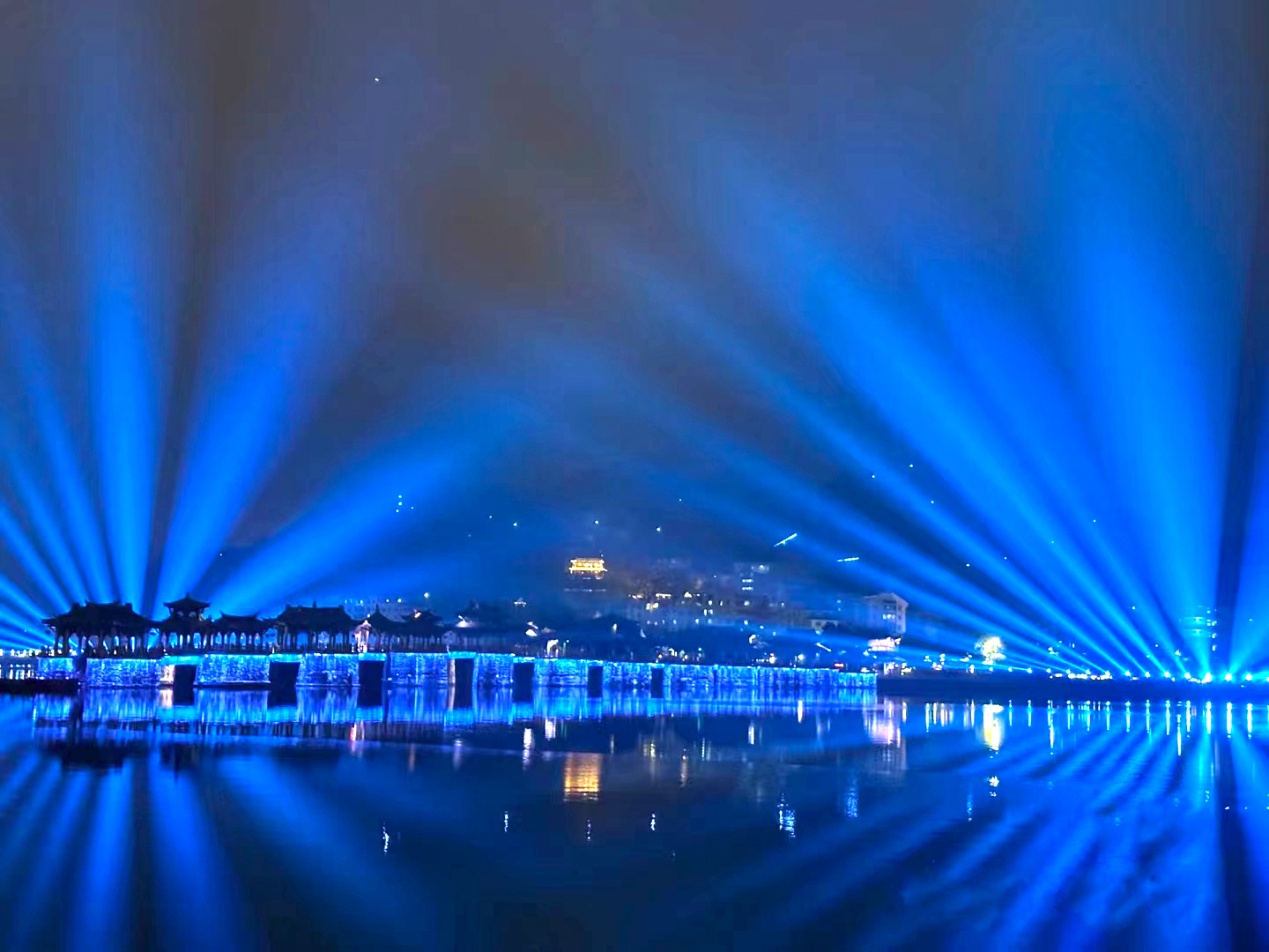 潮州古城灯光秀,韩山映射水波纹、波光粼粼,自然光色与古城风韵结合。诗的意境、画的取景,一江两岸即在画中,又在诗中,俨然有一股水墨乡愁丹青韵味。古城灯光秀是与气势磅礴的潮州音乐紧密结合,绝佳视觉、听觉享受!