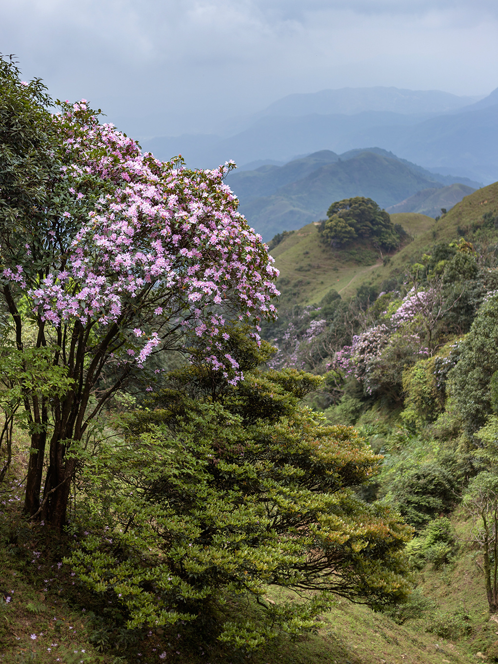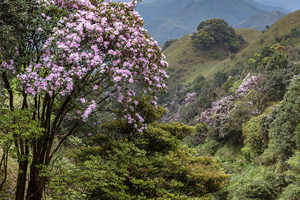 4、5月份是登鸡笼顶最佳的时节,不必登顶,半山腰就可以欣赏到高山草甸的旖旎风光。鸡笼顶花种繁多,有吊钟花、毛棉杜鹃、红楠等,其中毛棉杜鹃花最负盛名。看着此番美景,简直少女心爆棚。