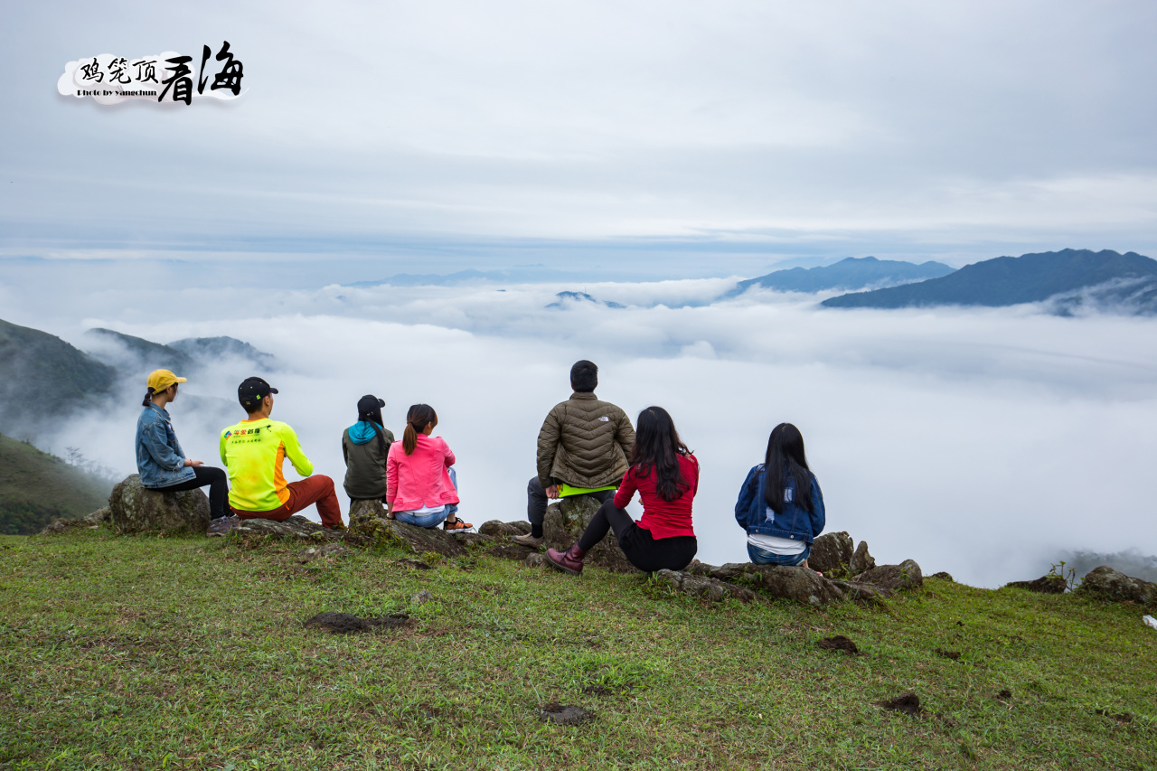鸡笼顶山势开阔,没有密林遮蔽,方位清晰,在山上能清楚看到山下的七星村。没有特别要求要有专业登山的穿戴,完全是随意的休闲运动装。当然,防滑的运动鞋还是必要的。