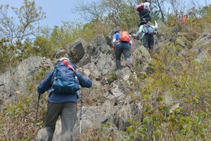 登山初始的路段是比较陡峭的,非常考验新手驴友。我们踏上这一段艰难的但却美丽的旅程,山道两旁是翠绿的树木,春风拂面而来,让我们不由得放慢脚步,享受这一切。