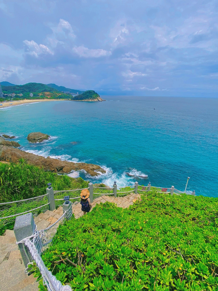 悬崖观海,眺望远方蓝蓝的大海,俯视山脚下的银白色沙滩,简直心旷神怡