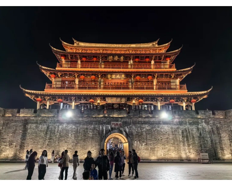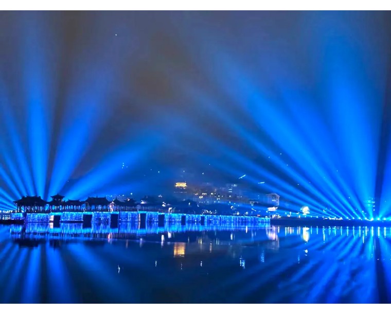 潮州古城灯光秀,韩山映射水波纹、波光粼粼,自然光色与古城风韵结合。诗的意境、画的取景,一江两岸即在画中,又在诗中,俨然有一股水墨乡愁丹青韵味。古城灯光秀是与气势磅礴的潮州音乐紧密结合,绝佳视觉、听觉享受!