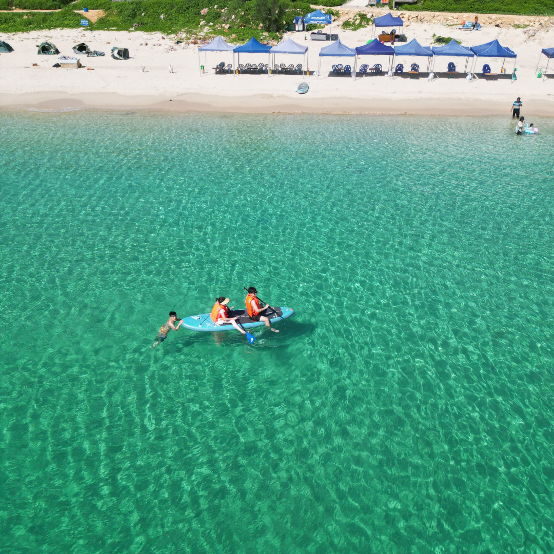 14:30 领取浮潜和桨板工具,先听领队讲解水上活动的体验操作要领、注意事项,然后分批开始体验(特别提醒:活动过程中全程须穿好救生衣);