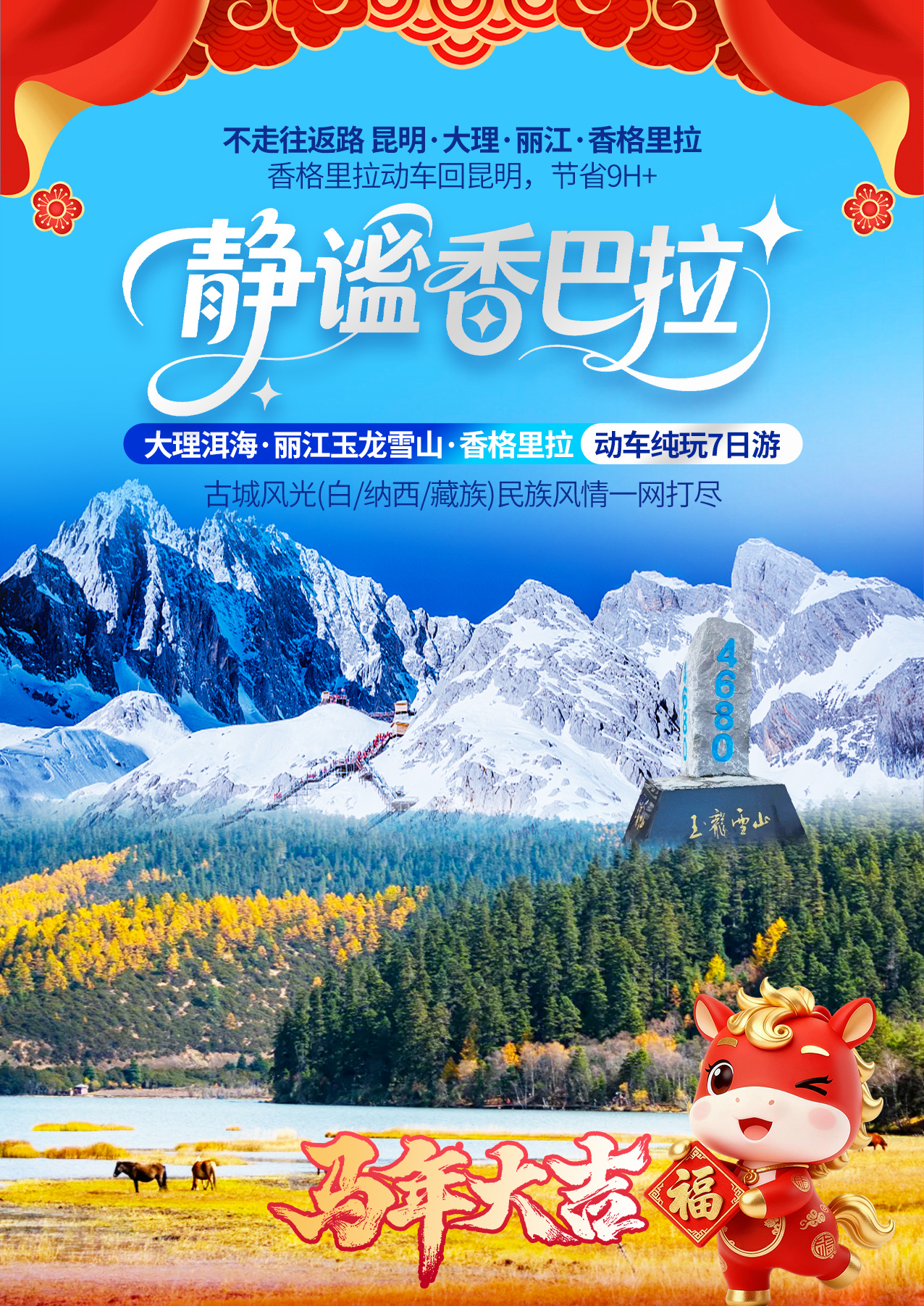 静谧香巴拉丨昆明、大理双廊、香格里拉、丽江古城、玉龙雪山 7日游