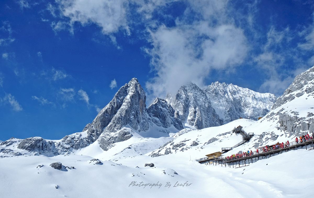 【玉龙雪山】在纳西语中被称为“欧鲁”,意为银色的山岩。其银装素裹,十三座雪峰连绵不绝,宛若一条“巨龙”腾越飞舞,故称为“玉龙”。玉龙雪山是纳西人心中的神山,主峰扇子陡海拔5596米,常年在云雾缠绕之中,是一座未被征服的处女峰。神秘的玉龙雪山在纳西族人心中,是保护神般的存在,每个来丽江的游客,都会去亲临这座巍峨的山川,体验异域风情,感受神山的魅力。