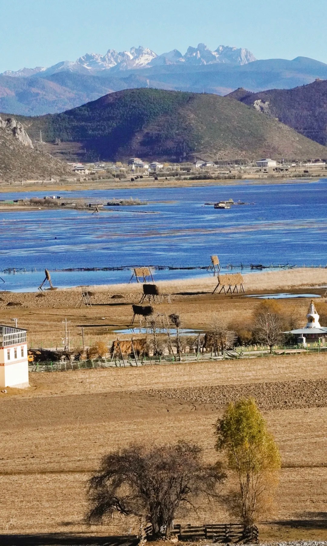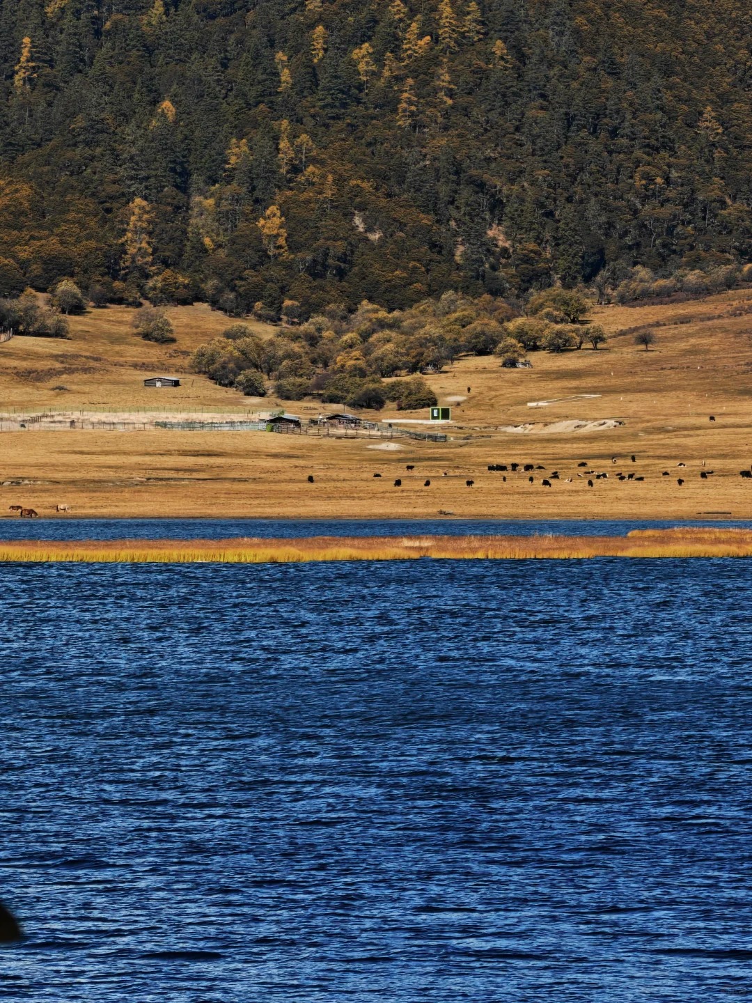 我们沿湖边栈道漫步游览3.5公里,观清澈的湖水,看水底小鱼悠游。湖四周是遮天蔽日的林木,湖畔还有个牛羊成群的牧场,充满藏区的生活情趣。春夏时节,湖畔有花海。冬季,早晨因为温差湖面上会升腾一层虚幻飘渺的白雾,能拍出较美的风光影片出来;