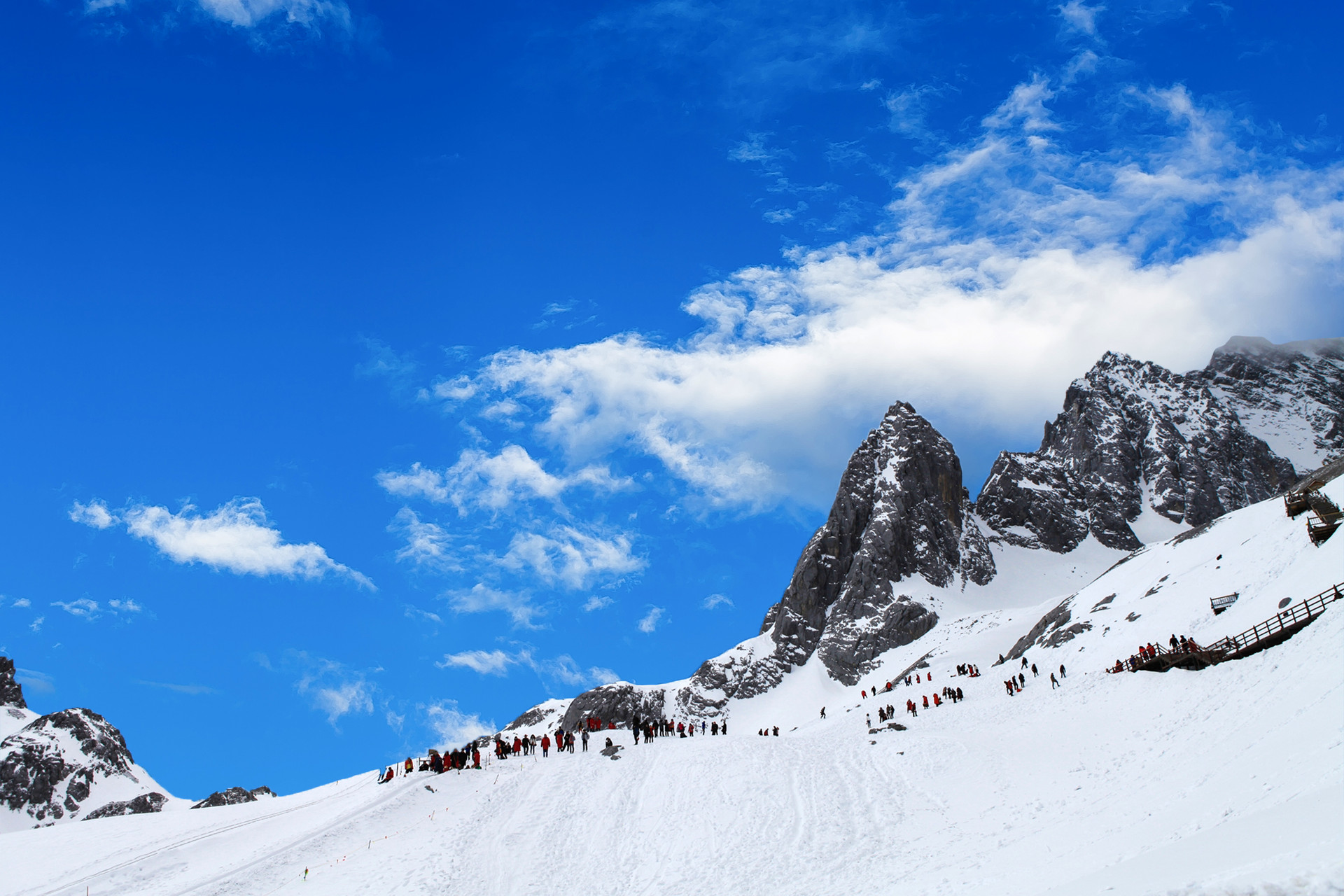玉龙雪山是由连绵的13座山峰组成的山脉,如一条矫健的玉龙横卧山巅,有一跃而入金沙江之势,故名“玉龙雪山”,主峰海拔5596米。
