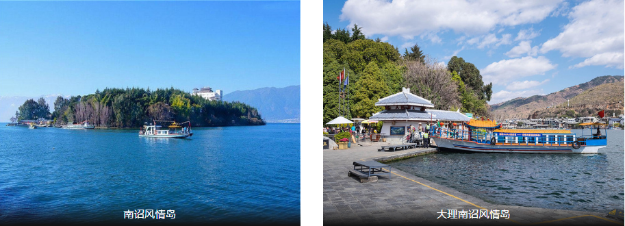 早餐后统一出发,沿杭瑞高速前往以风花雪月著称的南诏大理,抵达后自由午餐,乘坐摆渡船登【南诏风情岛】,南诏风情岛位于洱海东北部的双廊村对面,洱海三岛之一,南诏风情岛四面环水,风光秀美,非常漂亮。坐游船只需5分钟抵达岛上,阳光下,漫步笑道,看洱海的海水荡漾,驻足树下,洱海的歌唱,尽享“目极湖山千里外,人在水天一色中”的洱海漫游时光;