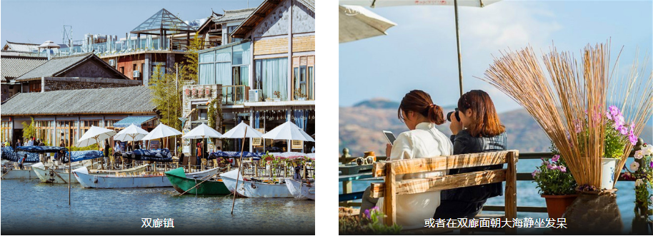 随后前往【双廊古镇】,来到双廊,必然会爱上这个水天一色、湖光交映的小镇。洱海素有三岛、四洲、五湖、九曲之胜,而双廊更是居沙洲之上、处两曲交界、揽两岛在怀,其“大理风光在苍洱,苍洱风光在双廊”之名可见不一般。