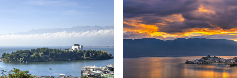 双廊洱海:素有“大理风光在苍洱,苍洱风光在双廊”之盛誉。漫步在双廊这具四千年历史的白族渔村,近观洱海无限风光,聆听古老大榕树下白族老人的白族调,时间仿佛在此刻静止。