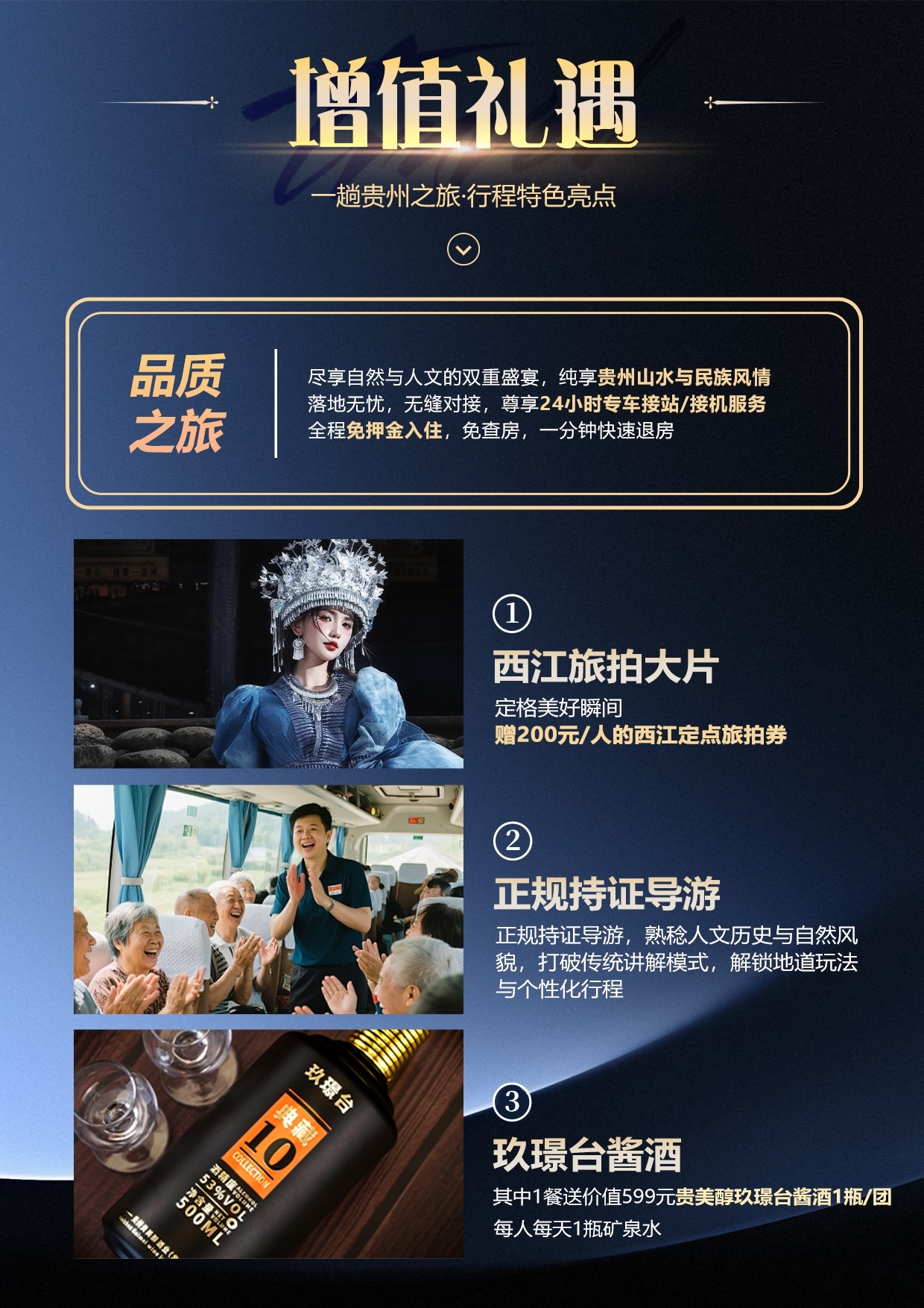5. 赠送200元/人西江定点旅拍代金券(可在西江指定旅拍点使用,不可折现,单张代金券只能使用一次)。