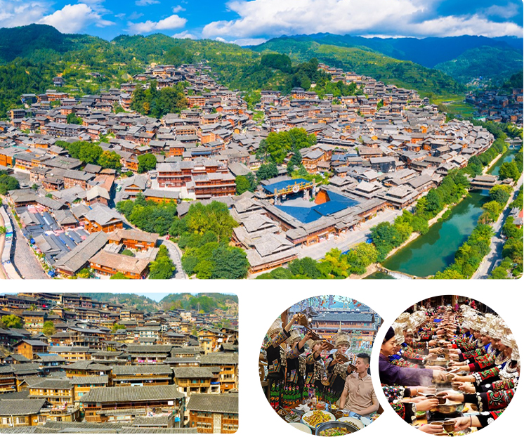 下午游览结束驱车前往目前中国乃至全世界最大的苗族聚居村寨【西江千户苗寨】(景区4程观光车20元/人,保险10元/人,费用需自理),观苗寨吊脚楼景观,赏乡村田园风光,深度体验当地少数民族风情。游览完毕前往酒店入住。