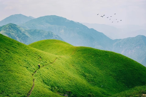 武功山烟雾迷蒙,充满了神秘和浪漫的气息。从金顶到发云界,全是高山草甸,碧波荡漾,而且延绵不绝,满眼的绿色,像是来到了内蒙古大草原,让人有纵马驰骋的冲动,感觉自己好像进入了天堂;武功山连绵不断的山坡,会把人爬奔溃。