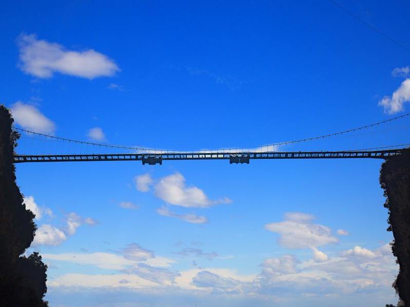 云天渡全长536米、宽6米,为一座大型山谷悬索桥,因其创下多项玻璃桥的世界记录而闻名中外,云天渡工程获阿瑟·海登奖,CNN将其列入世界上11座最壮观的桥之一; [18] 10月11日,吉尼斯世界纪录年鉴2019年最新版本发布,云天渡以“世界最高人行桥”入选