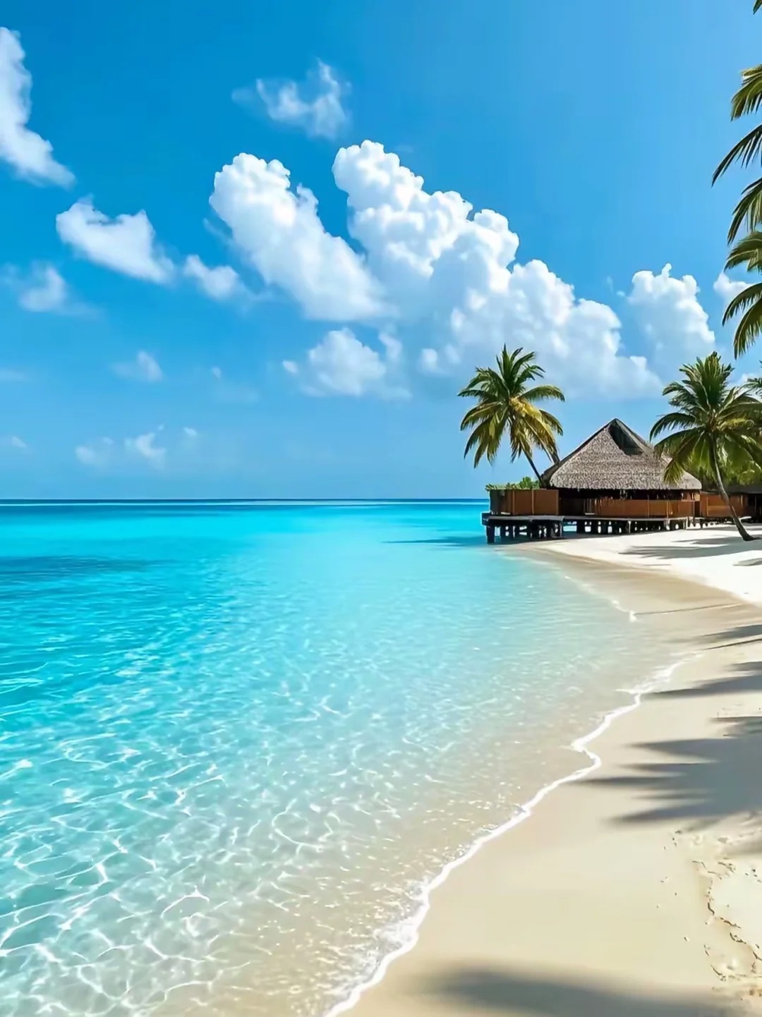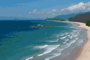 摆动的椰林,细白的沙滩