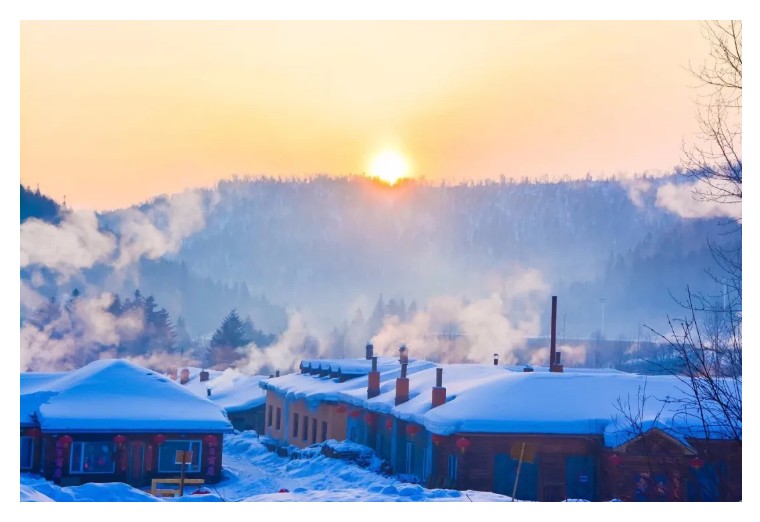 当第一缕晨光轻抚雪乡的屋檐,推开房门,清新的空气裹着凉意扑面而来,远处炊烟袅袅,整个雪乡仿佛一幅刚刚苏醒的水墨画。