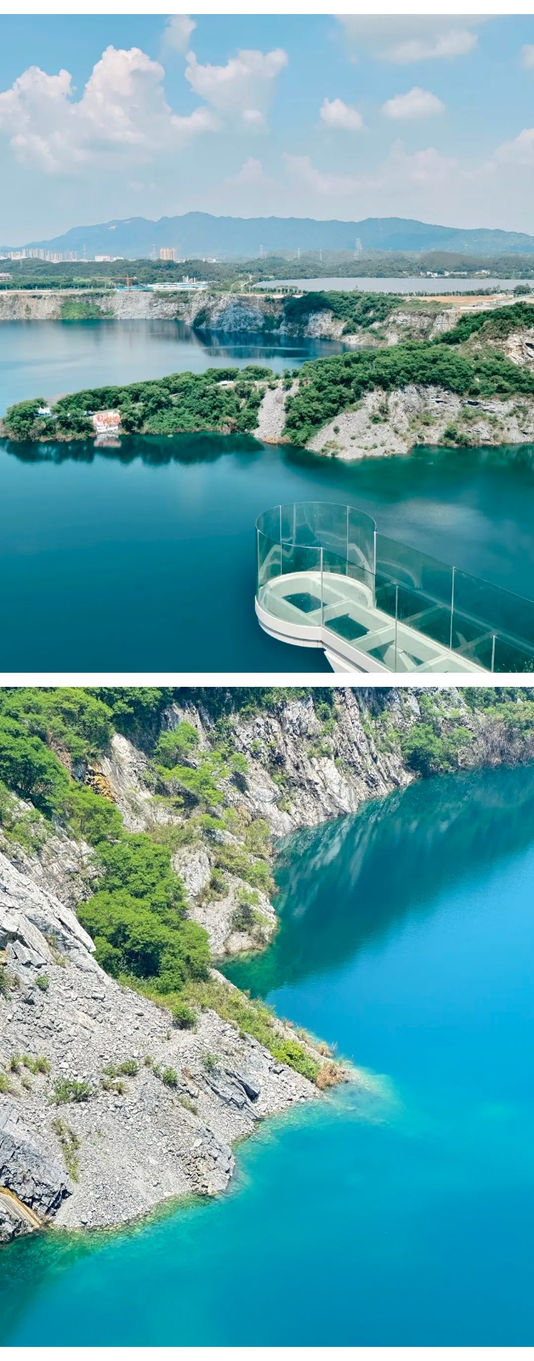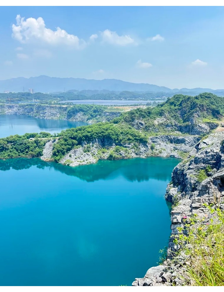 广东居然还有个这么小众又好看的地方!被青山绿水环绕~湖水蓝得像宝石,旧矿山改造的咖啡馆也太有感觉了,工业风+自然景完美碰撞!阳光洒在湖面上,湖水蓝得像巨大的蓝宝石,波光粼粼。