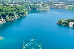 碧波荡漾的天然矿湖,湖水清澈湛蓝,在阳光照射下呈现出梦幻的"蓝眼泪"奇观。湖水清澈湛蓝,水质达到地表二类水标准,在阳光下呈现出不可思议的蓝绿色调,随着光线变化而变幻莫测。
