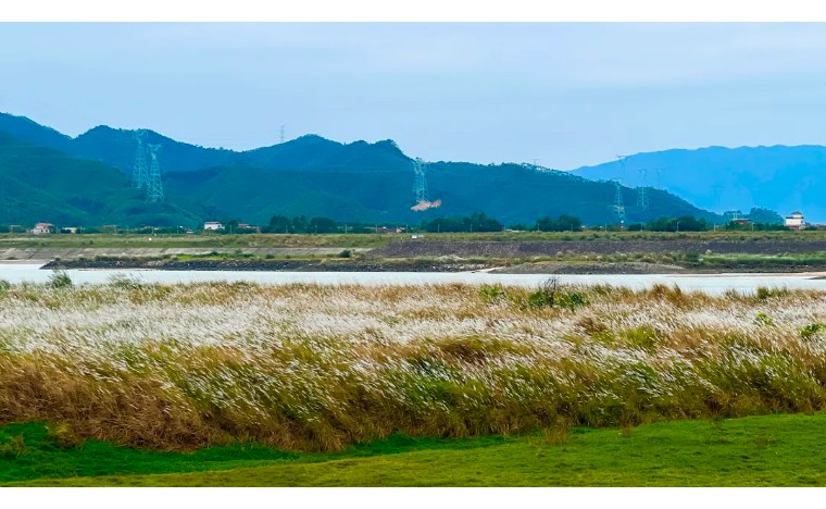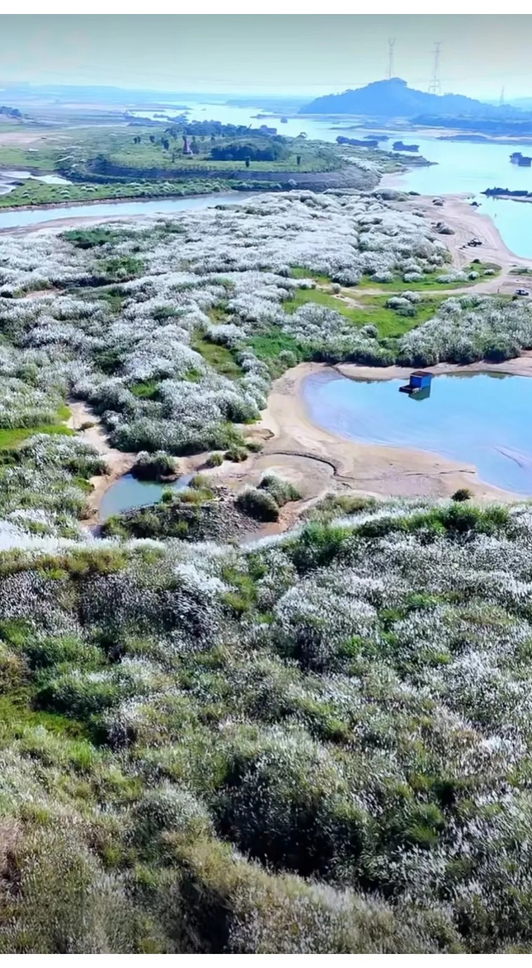 被清远江边盛开千亩芦苇地
