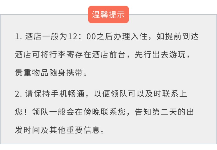1.如需要上午直接返程,请提前告知领队离团;