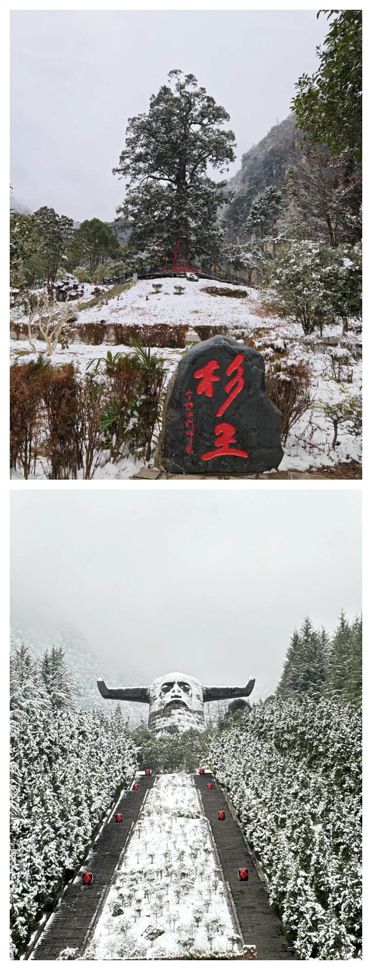 当雪花纷纷扬扬地飘落,神农坛仿佛披上了一层洁白的银装。古老的神农雕像在冰雪的映衬下,更显庄严肃穆。这里的每一寸土地都散发着神秘的气息,仿佛在诉说着远古的故事。