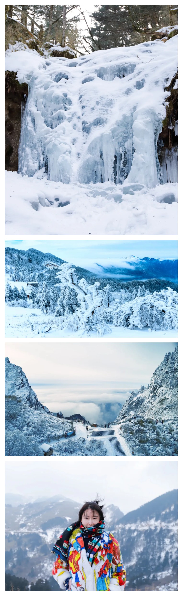 当雪花纷纷扬扬地飘落,神农顶被装扮成了一个银装素裹的世界。连绵的山峦被白雪覆盖,如同一条洁白的巨龙蜿蜒盘旋。古老的冷杉林在冰雪的包裹下,愈发挺拔苍劲,枝头挂满了晶莹剔透的冰挂,仿佛是大自然雕琢的艺术品。