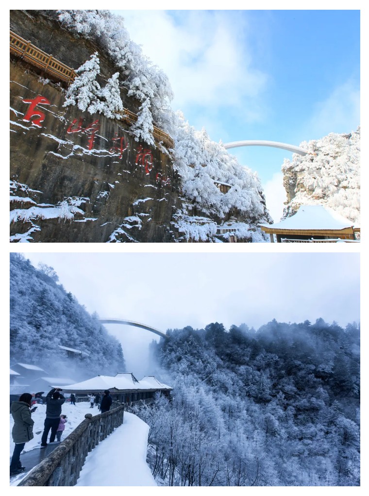 冬天,这里则是银装素裹,站在彩虹桥上,远眺神农架这片区域。