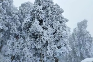 由于山顶气温很低又云遮雾绕,