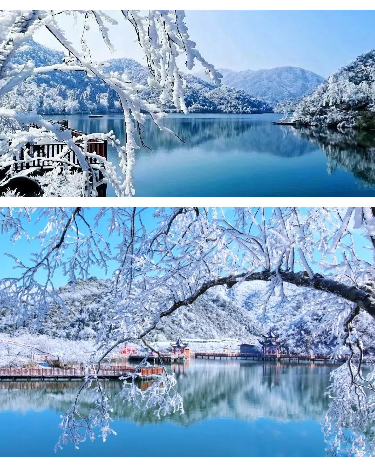 一排排树冠凝霜挂雪戴玉披银,晶莹剔透美轮美奂